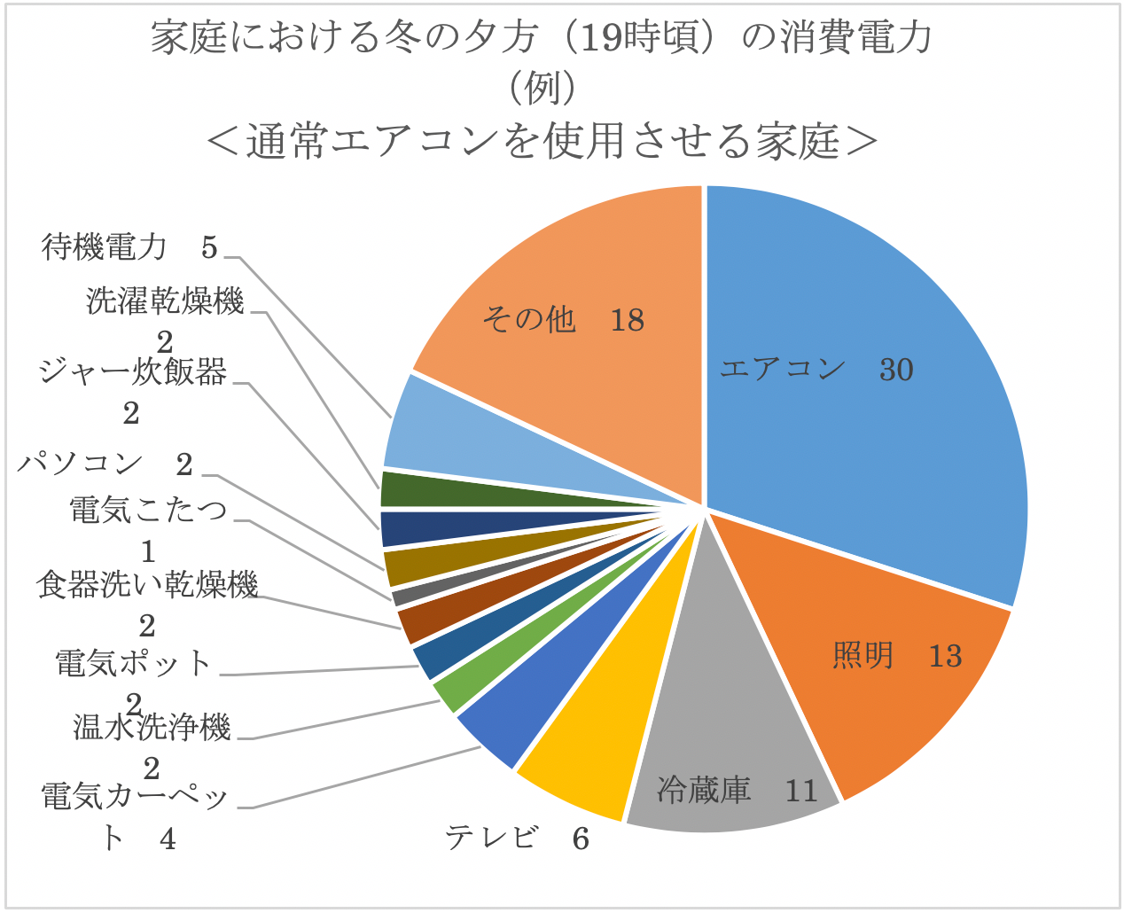 (※1)外気温度6℃の時、エアコン(2.2kW)の暖房設定温度を21℃から20℃にした場合(使用時間:9時間/日)